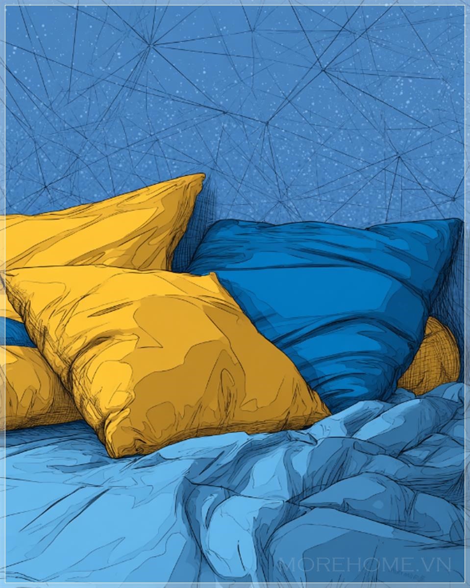 Như một mảnh ghép nhỏ của giấc mơ trong một vũ trụ hoạt hình, chiếc gối ôm xanh vàng hiện ra rực rỡ, mềm mại, với những đường nét bo tròn ngộ nghĩnh như thể vừa bước ra từ một khung tranh truyện tranh. Hai màu sắc – xanh coban mát mắt và vàng nắng tươi sáng – hòa quyện vào nhau một cách sống động, tạo nên một tổng thể vừa ấm áp, vừa năng động. Bề mặt vải của gối được vẽ bằng những nét chấm phá đơn giản nhưng đầy biểu cảm, giống như nét cọ của một nghệ sĩ minh họa đầy sáng tạo.