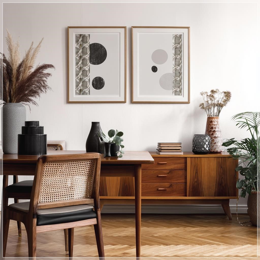 Có những khoảnh khắc trong trang trí nội thất mà sự đơn giản lại mang đến vẻ đẹp vượt thời gian. Khi bạn nhìn vào một bộ khung ảnh A3 trống, đặt trong một không gian mang đậm dấu ấn mid-century, bạn không chỉ thấy những món đồ nội thất, mà là những câu chuyện chưa kể. Đó là một sự kết hợp hoàn hảo giữa thẩm mỹ và công năng, giữa quá khứ và hiện tại.
