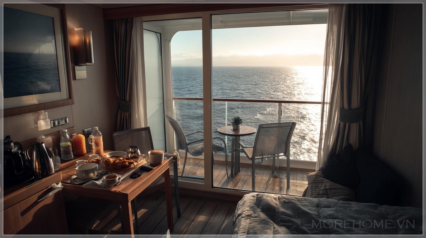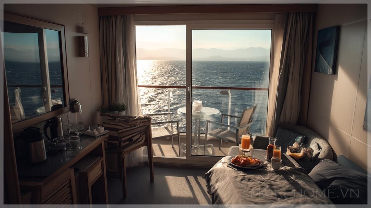 Nhìn chung, cabin du thuyền với ban công nhìn ra biển là một trải nghiệm tuyệt vời cho những ai yêu thích sự yên bình và kết nối với thiên nhiên. Cảnh biển bao la, ánh sáng dịu nhẹ và không khí trong lành sẽ khiến bạn cảm thấy thư giãn, tự do và đầy cảm hứng. Đây không chỉ là một không gian sống, mà còn là một nơi để thưởng thức vẻ đẹp tuyệt vời của thế giới xung quanh, giúp bạn tìm thấy sự bình an trong tâm hồn.