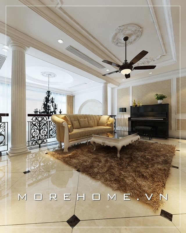 Sofa phòng khach biệt thự với gam màu trung tính mang đến sự độc đáo và ấn tượng mỗi khi bước chân vào căn phòng.