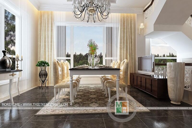 Thi công phòng ăn không gian thưởng thức những món ăn ngon lành dành cho người thân bạn bè nội thất sắp xếp khoa học hợp lí đạt giá trị sử dụng và thẩm mỹ cao