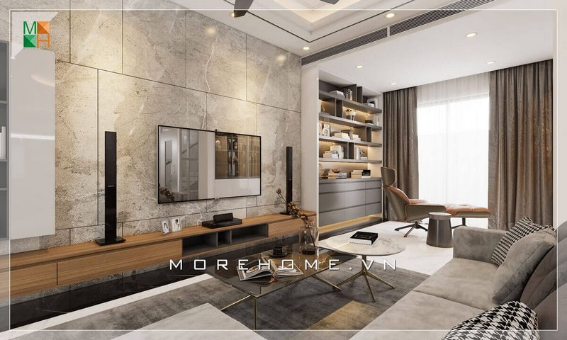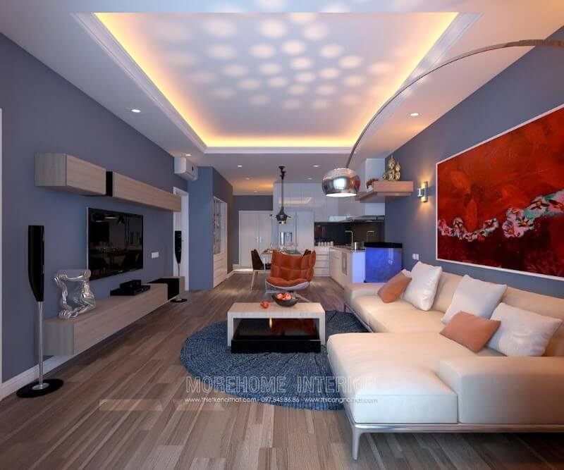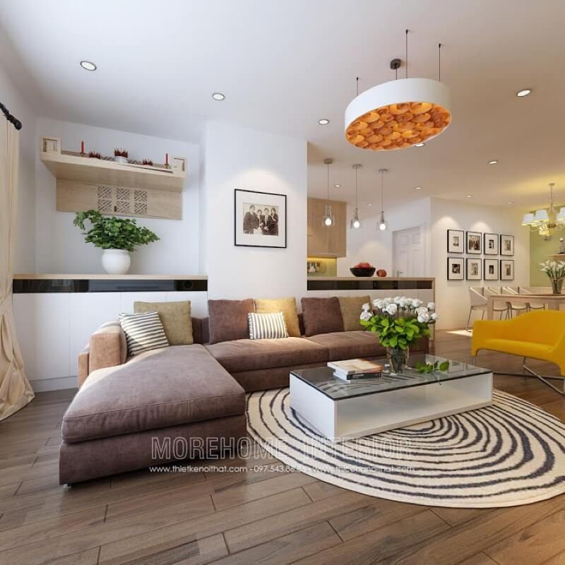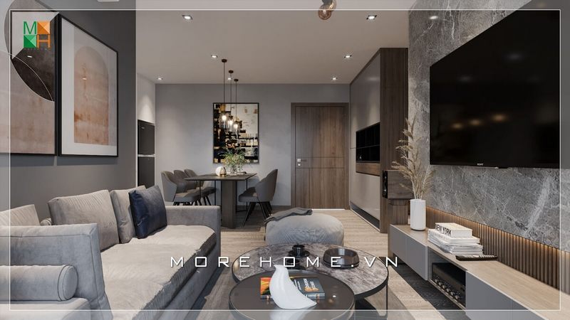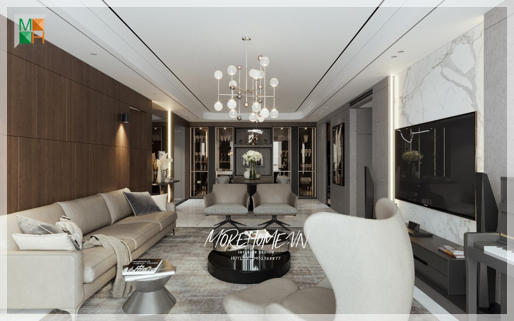 Đẹp, sang trọng và tiện nghi là những phản hồi tích cực đến từ phía người tiêu dùng với mẫu thiết kế phòng khách chung cư hiện đại ấn tượng của Morehome.